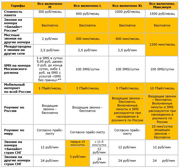 "Все включено" от Билайн: описание и стоимость тарифа, как подключить
