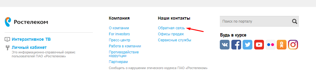 Кроме того, существует возможность подачи жалобы через форму обратной связи на официальной онлайн-площадке Ростелеком.